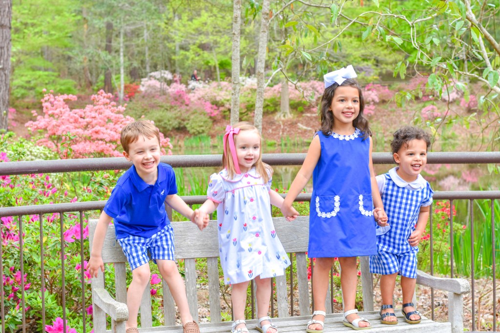 Last week, I met up with my high school/college/mom friend (Claire) and her sweet and adorable babies at Callaway Gardens. We strolled through what’s called the Azalea Bowl and snapped tons of photos of our coordinating cuties in front of these gorgeous flowers. They are all wearing The Beaufort Bonnet Company – one of my favorite children’s brands, especially for matching! First time customers get 20% off here!